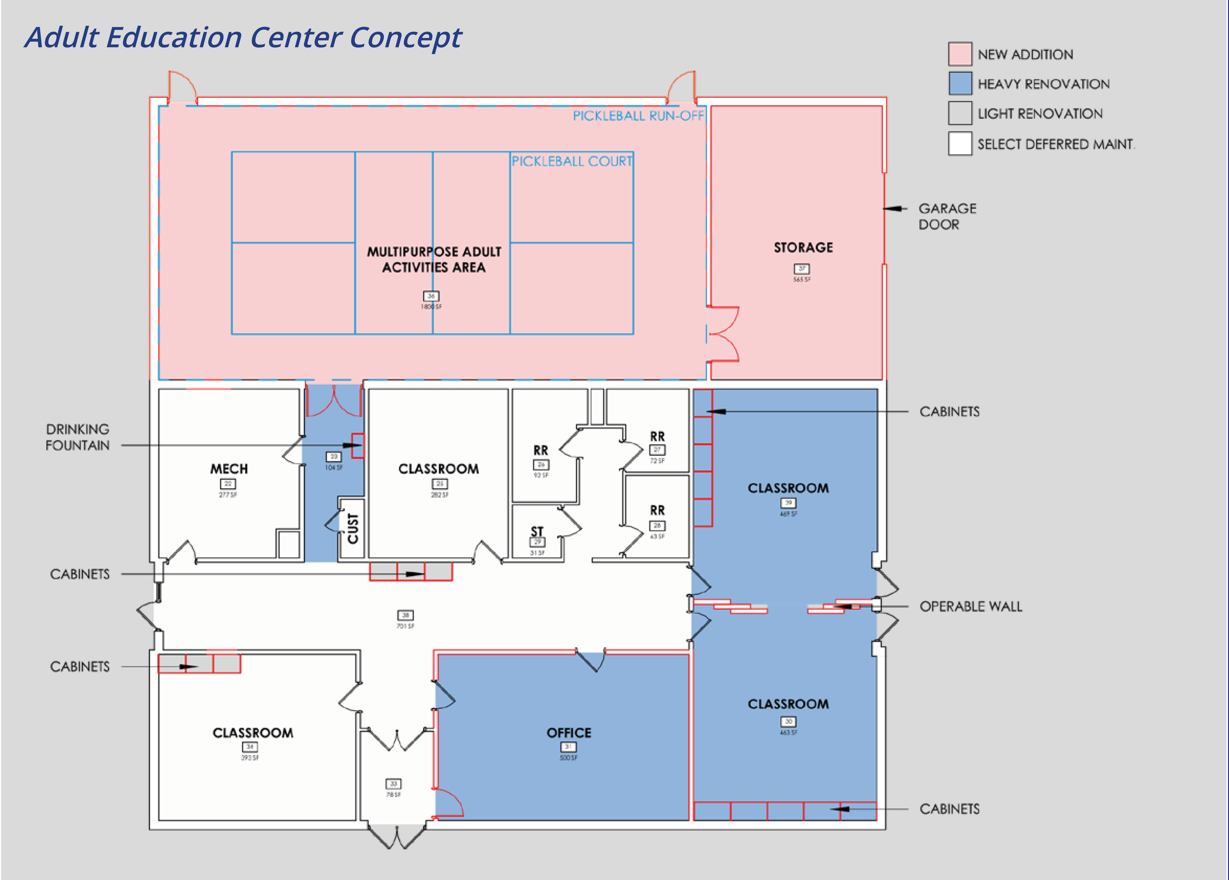 Expansion includes recreational space for daytime fitness classes, pickleball, and other enrichment activities.